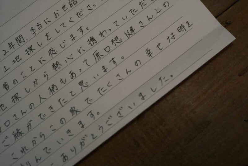 お手紙もありがとうございました。2年間関わらせていただき光栄でした。