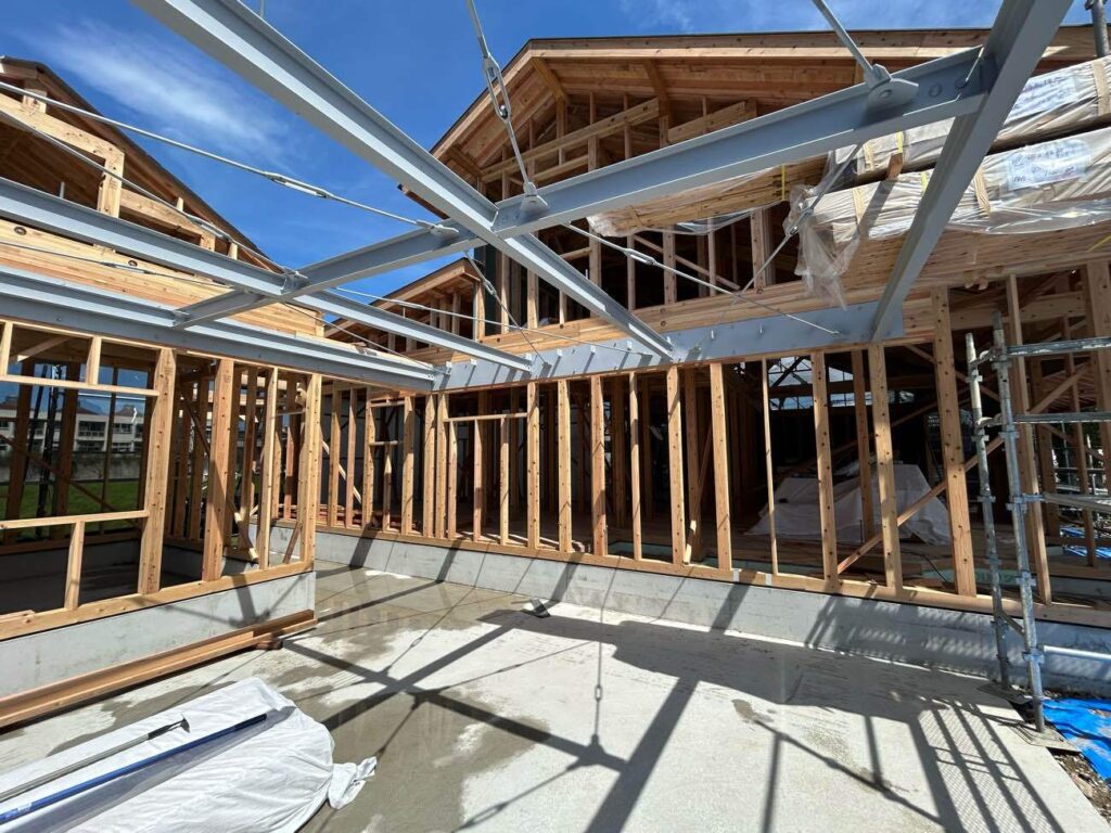 糸島の家、無事に上棟をおえました。田畑の自然を感じながら、ガレージや暖炉、ゆっくりと時間を愉しむ暮らしへ。土地においては様々な制限があるなか、周りの景色や土地をどう取り入れていくかを考えこの場に上棟しました。大きな造りの中にだからこそ、細部までバランスを考えて丁寧に仕上げていきます。