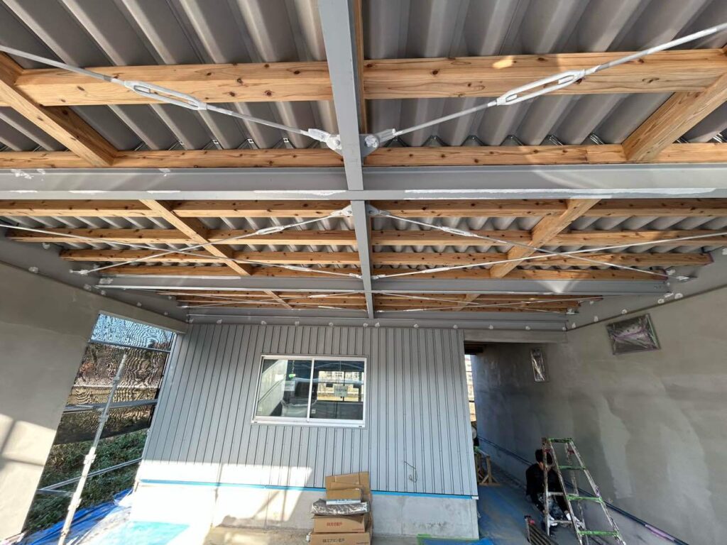 その空間にあう材質を選定し、そして素の質感を活かしてガレージ特有のラフな空間にて適応させていきます。一つの部屋のように壁や屋根を施工するのではなく、構造材や木などを見える状態にし、整えていきます。子どもも、大人も暮らしに気遣うことなく、愉しむことができる空間へ。
