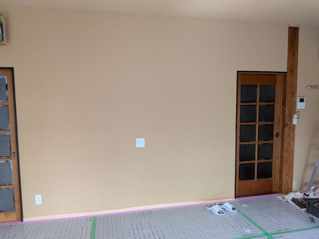 城西ヶ丘の家、少しずつリノベーションが進んでいます。今回リフォームやリノベーションでは、綺麗に新品のようにするのではなく、こだわって造られた住まいをこれまでの暮らしと繋ぎ、より洗練された空間へと一体化していきます。真壁と間柱、木のドアなど、元ある素材の良さを引き立てる空間にしていきます。内壁では真っ白で光を反射するようなクロスではなく、砂のような質感がある聚楽(じゅらく)風の壁紙使っています。また床材は杉を張っていき、カーテンには和紙のロールスクリーンを使用して、柔らかい生成りのような色味も入れていき、全体で見た時の一体化をつくっていきます。これから、ここにいると自然と気持ちが落ち着き、みんなで集まった時は長居したくなり、ひとりでいる時は静かな時間として愉しむことができるそんな空間に少しずつ仕上げていきます。毎日の施工の様子を愉しんでるご主人様と、これからの暮らしの想いも一体化しながら本日も想建中です。