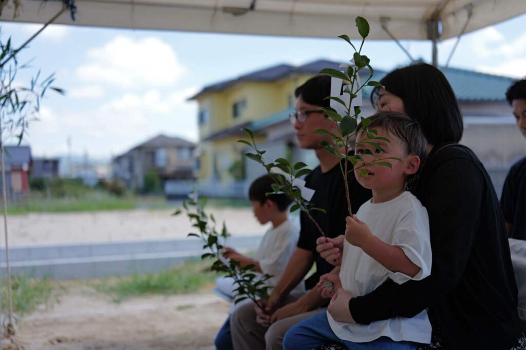 九月より大刀洗町にて新たな暮らしに向け、少しずつ動きだしました。出会いのきっかけは、OB様からの紹介で資料請求からはじまりました。別のハウスメーカーで検討していることから、様々なお話をお聞かせいただきました。分譲地から離れて全く環境の違う土地を眺めたり、原口想建のOB様の暮らしの体感したりと、ゆっくりと回り道をしながら進んできました。その結果これからのご家族の暮らしをどうしていきたいという自問自答のような対話繰り返し、暮らしの「こうしたい。」が生まれてきました。リビングにある土間から開口を大きくとった、はきだし窓。引き算から生まれた坪庭。様々な愉しみが生まれ、その愉しみを設計や計画にひとつずつ点で落とし、線で繋げスタートラインへ。