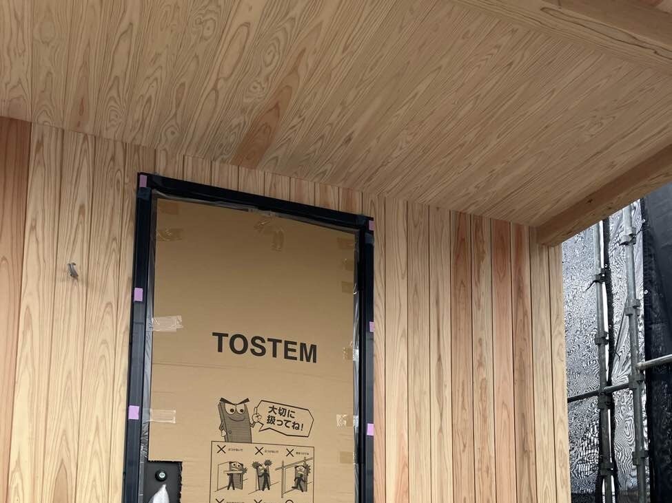 大刀洗の家、外観の杉板が僅かな幅を保ちながら、一枚ずつ等間隔に並べていきます。節なしの杉板、これからの暮らしと共に過ごし、四季による伸縮を見越して余白を残します。詰めすぎてしまうと、湿度によっては、木の膨らみが生じ、干渉し反りなどの原因になることもあります。そういった変化も考慮し節なしの杉板の印象をより、洗練された印象に。