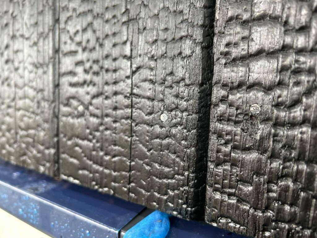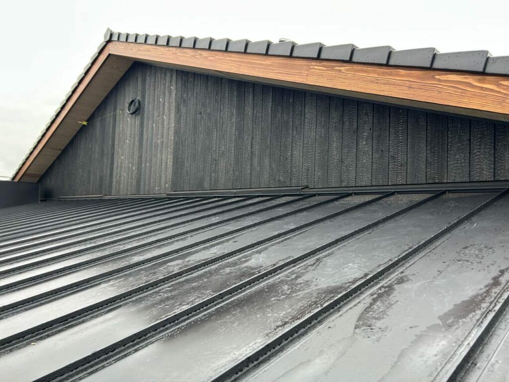 うきはの家、屋根が終わり、外壁へと進んでます。奥様からご要望頂いた、焼杉の板が並んでいきます。焼杉の素材を活かすために、釘は焼杉専用の釘で留めていきます。ただ焼杉だけを目立たせることを思考せず、うきはの家の全体像から、瓦やガルバリウムなど互いに溶け合うようにまとまりのある美しさへ。