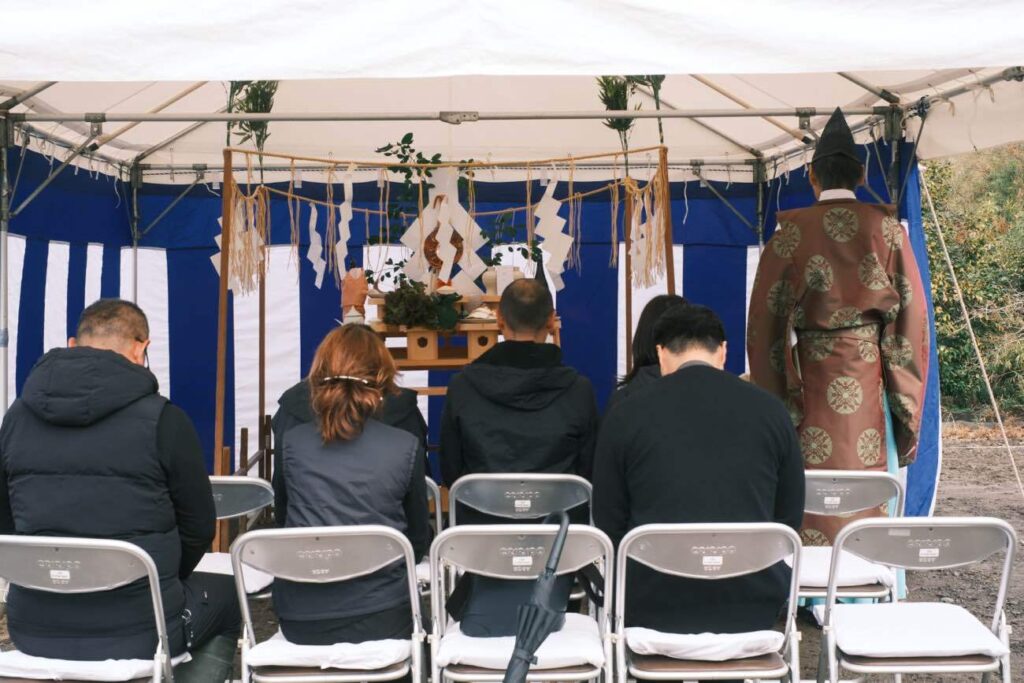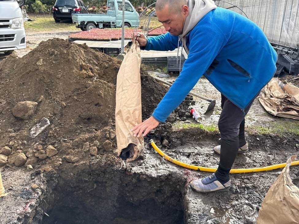久留米市草野町吉木にて来年の新たな暮らしへ向けて、様々なことに感謝し、ご祈祷をおこないました。吉木の家では、元ある住まいを一度まっさらな状態へ。この地で新たな気持ちで、暮らしへと繋げていきます。地鎮祭を終え、暮らしの土台でもある地に、埋炭により自然の流れを良くし、環境を整えていきます。